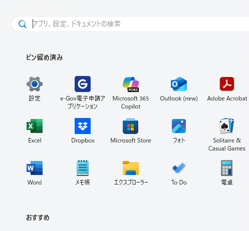 キーボードの「ウィンドウズ」キーを押すと検索バーと言われるウィンドウが開きます。