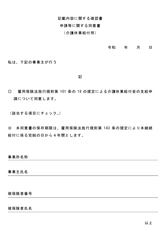 ただし、事前に本人より申請についての同意があれば「申請について同意済み」と記載して署名を省略することもできます。