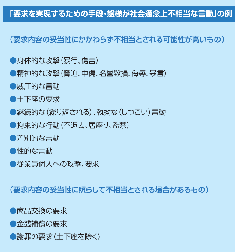 社会通念上許容される範囲を超えた言動の例としては、以下のようなものとされています。