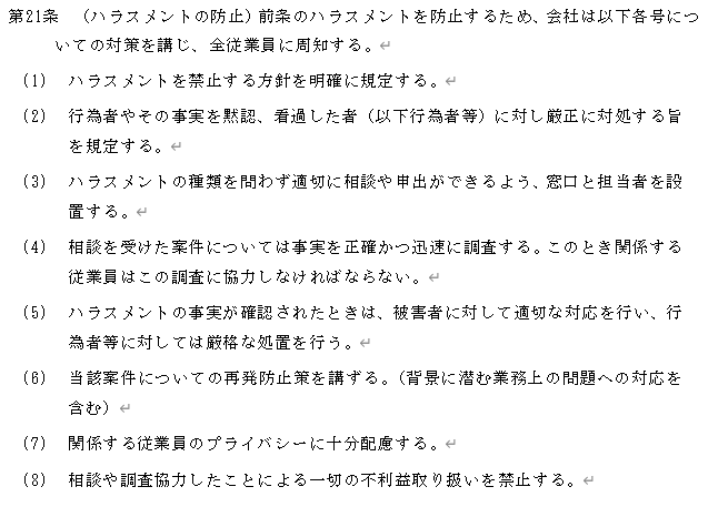 この措置義務は10項目ですが、それをまとめたものが以下の規程例です。