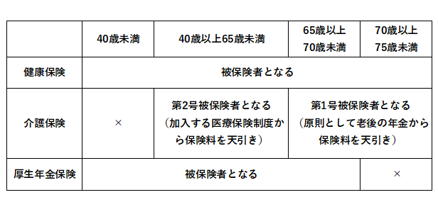 | 被保険者とはならない人 (国民年金第1号被保険者) | 被保険者となる人 (国民年金第2号被保険者、健康保険・厚生年金の被保険者) |