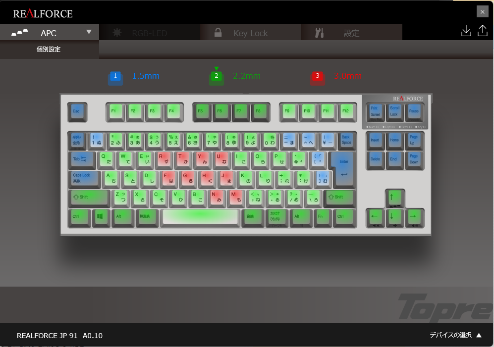 使い始めは、全てのキーを2.2mm(緑色)で問題ないと思います。