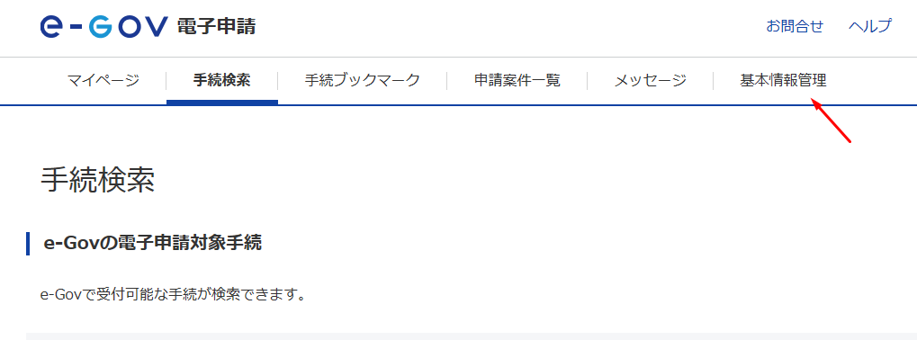 まずは、e-Govの右上にある基本情報を設定します。