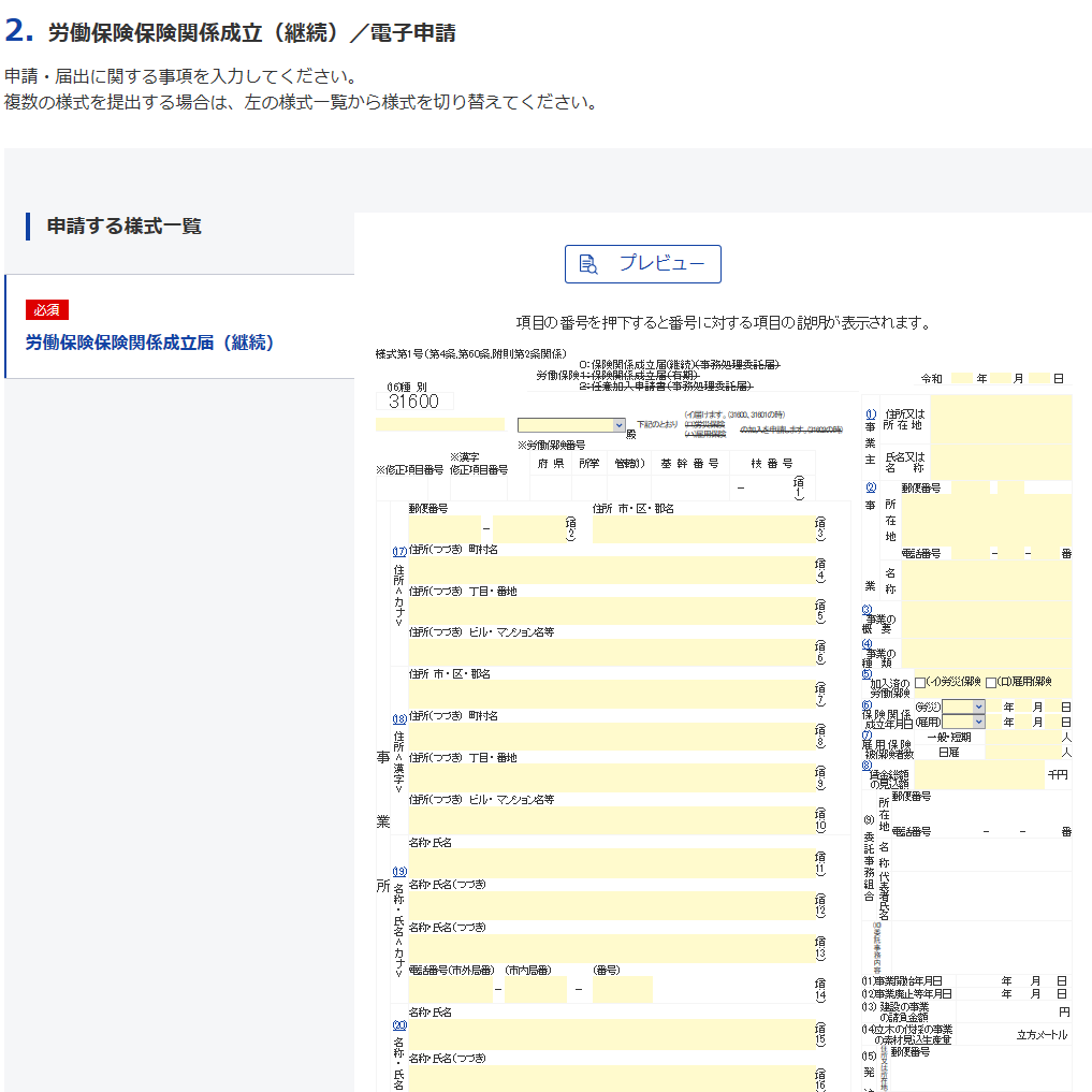 『健康保険・厚生年金保険新規適用届』を選択すると、下図が現れます。