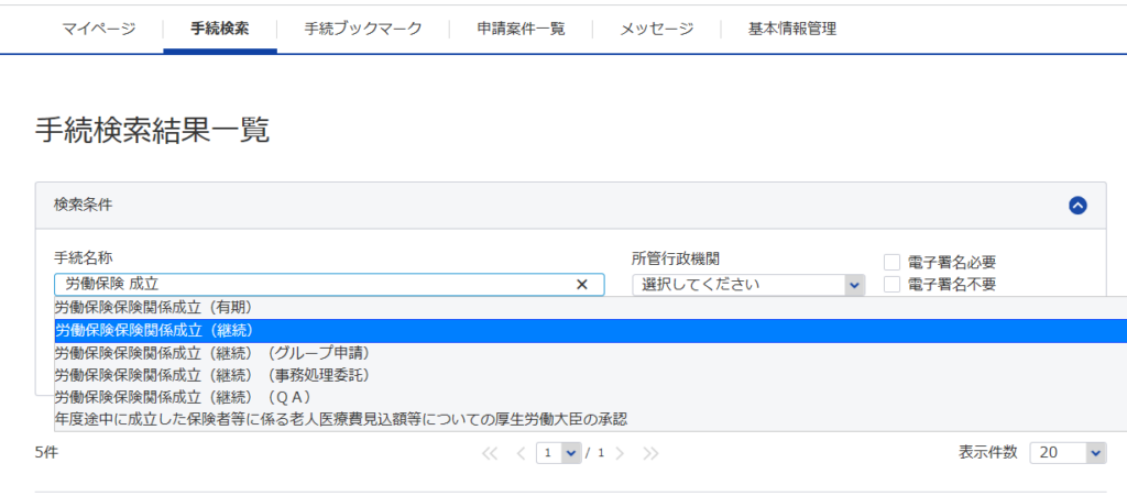ここでは、『労働保険保険関係成立(継続)』を選択します。