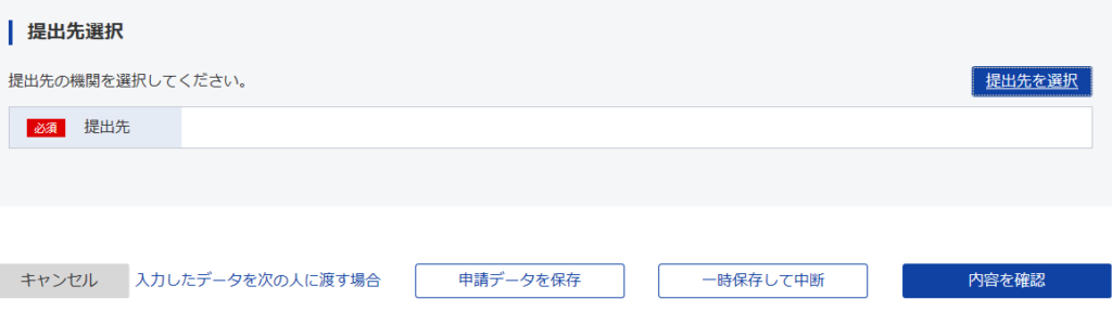 提出先選択で管轄の労働局を選択します。