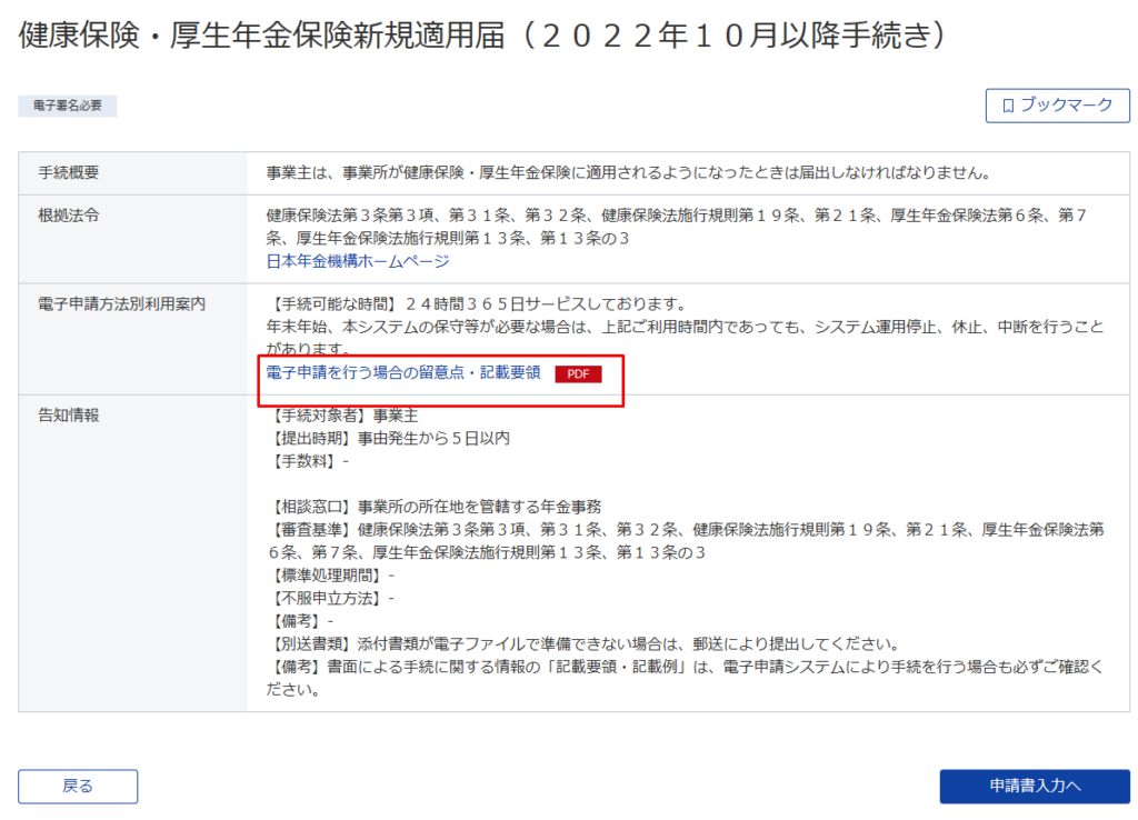 この「電子申請を行う場合の留意点・記載要綱」は確認しておきましょう。