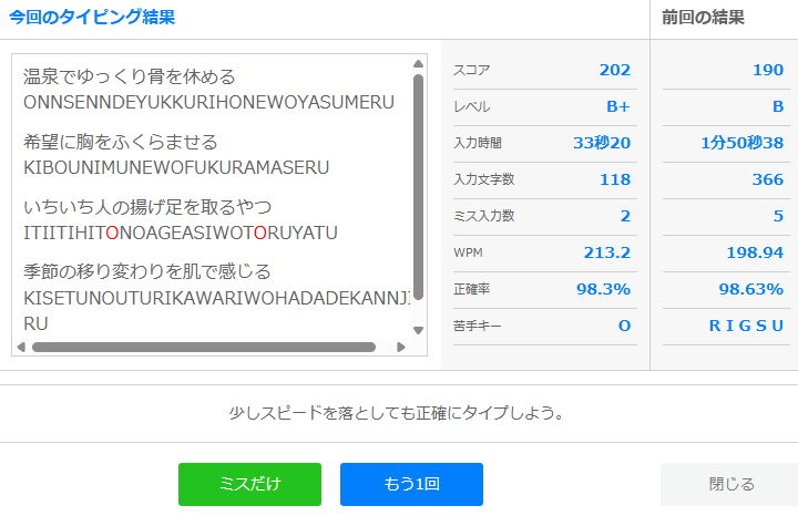 200を安定的に超えるようにはなっていませんが、多少なりとも上達しています。