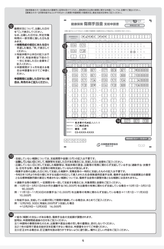 例3 労務不能と認めた期間、証明日付は毎回必須