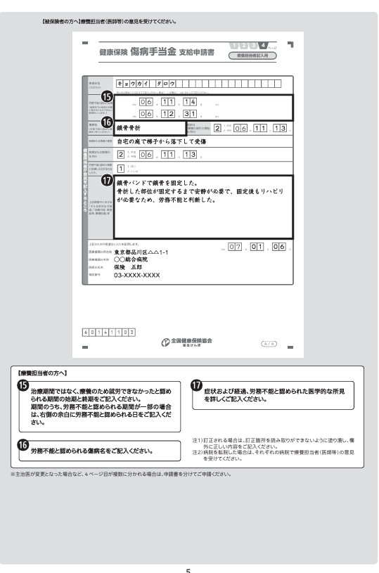本人が行う手続きとしては、申請書の本人記入欄の記入と、療養担当者に証明をもらうことが挙げられます。