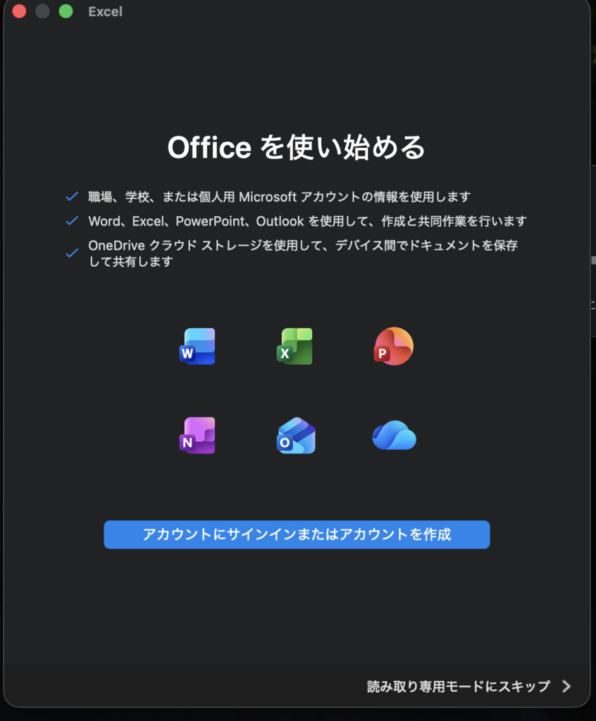 すると、どうやらアンインストールせずにMacでOfficeがインストールできました。