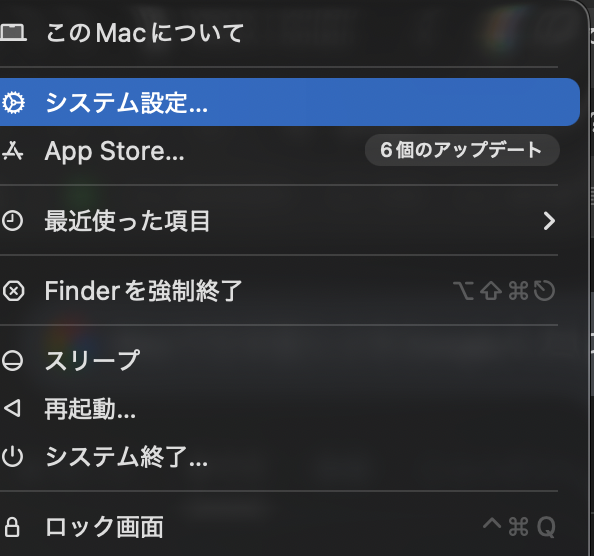 その後にデスクトップの左上のりんごのマークをクリックして、システム設定をクリックします。