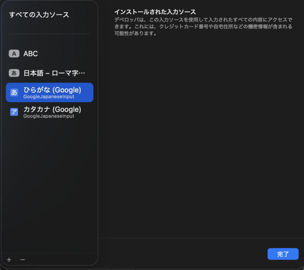 必要に応じて「カタカナ(Google)」なども同様に追加します。