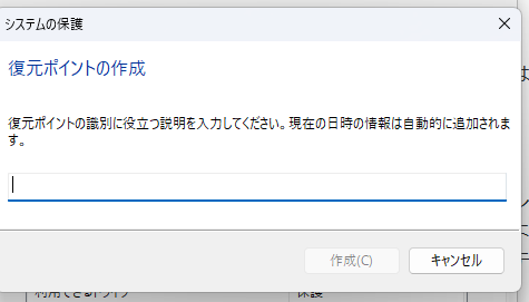 名称を入れて、復元ポイントを作成します。