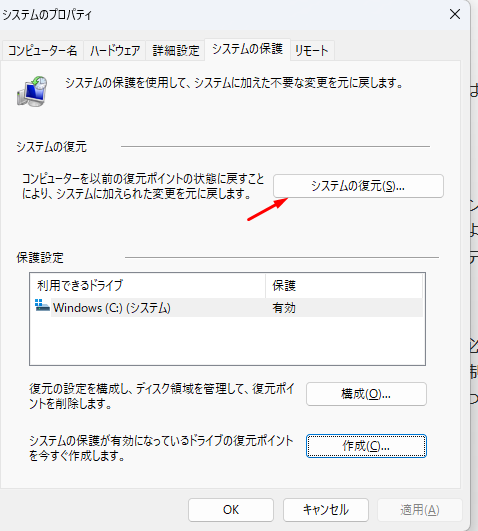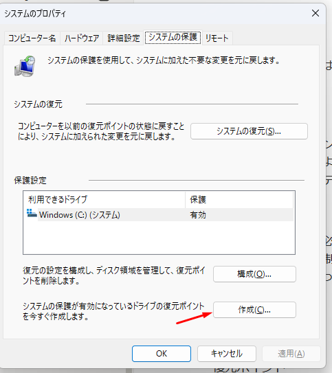 Windowsには「復元ポイントの作成」というものもあります。