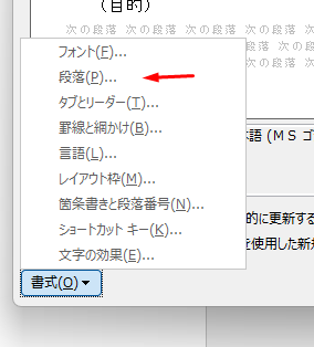 「段落」をクリックします。